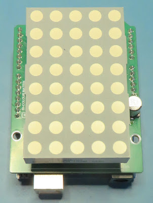 The completed prototype board used pin headers for the LED matrix although the PCB was designed to allow flush mounting of the LED matrix.